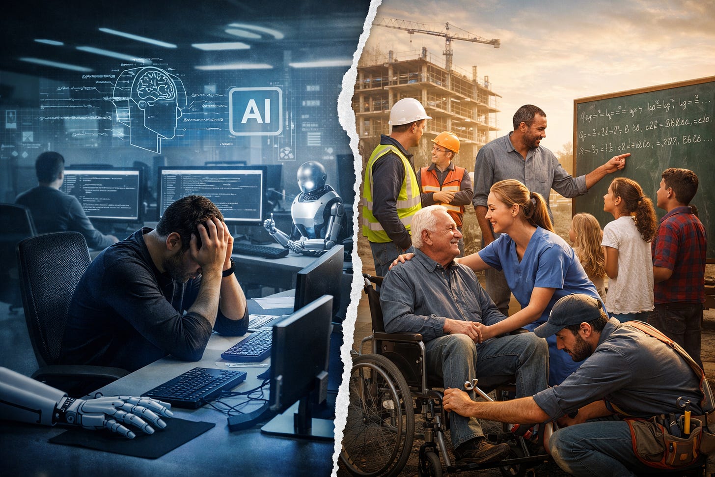 Entire career paths shrink or vanish. Not because people failed, but because the economic justification disappears.
